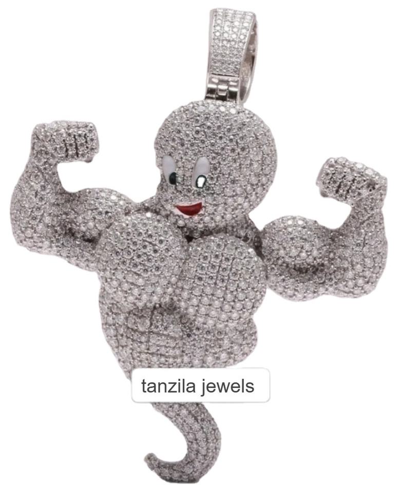จี้เพชรโมอิสรูปการ์ตูนรูปการ์ตูนสีขาวทรงกลมจี้ฮิปฮอป