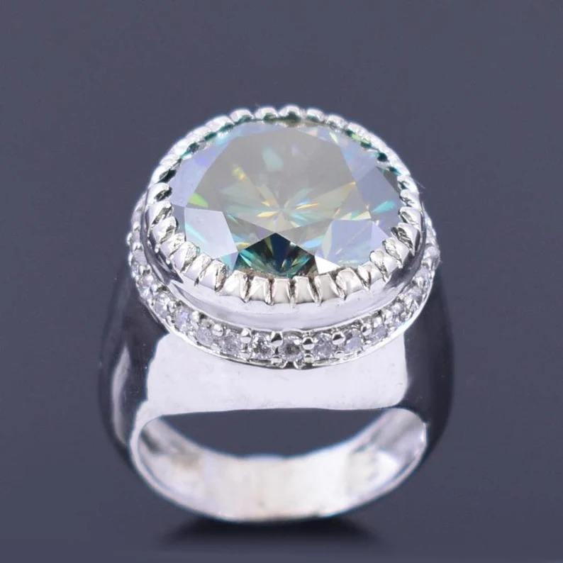 แหวนเพชรโมอิสซาไนต์สีน้ำเงินเงิน