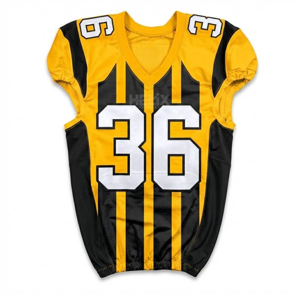 เสื้อฟุตบอลอเมริกันแบบซับเหงื่อ สีดำ-น้ำเงิน ลายเสือ แบบสั่งทำพิเศษ สำหรับทีม ชุดแข่งขัน