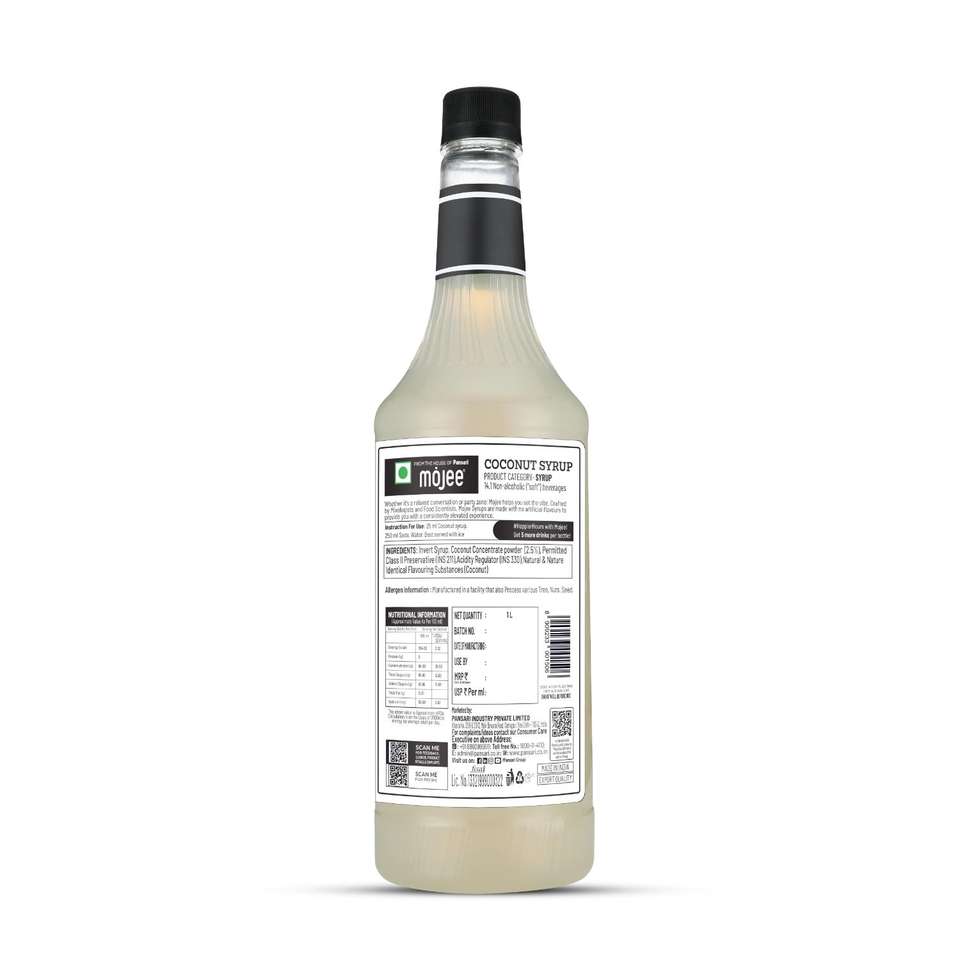 น้ำเชื่อมมะพร้าวโมจี 1000 มล. รสครีมทรอปิคอล บรรจุขวด สำหรับทำม็อกเทล ไม่มีสารแต่งกลิ่นสังเคราะห์ อายุการเก็บรักษา 12 เดือน