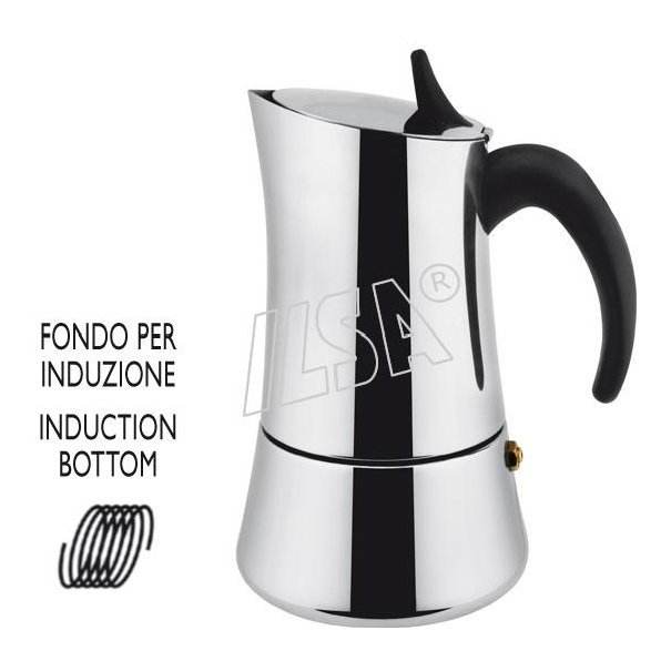 เครื่องชงกาแฟโมก้าพอท 6 ถ้วย สเตนเลสสตีล สำหรับเตาแม่เหล็กไฟฟ้า โครเมียมขัดเงา (ELLY 00880060ICC)