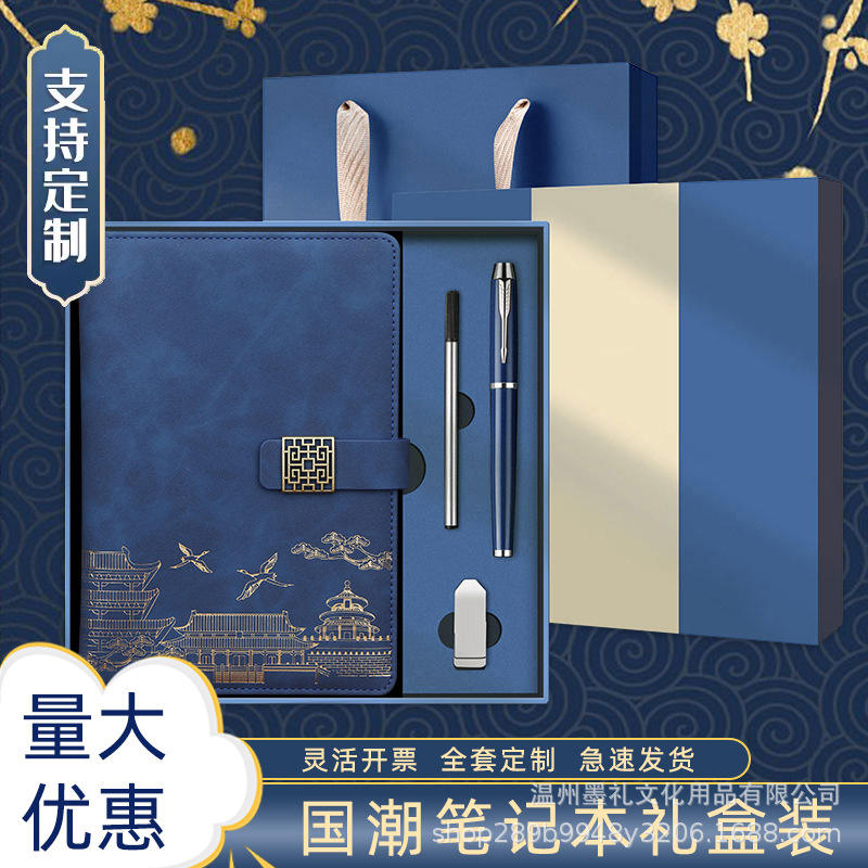 ชุดของขวัญสมุดโน้ตสไตล์จีน Moke Li ปกหนัง PU ปั๊มนูน พิมพ์ลาย สำหรับธุรกิจ สำนักงาน ปรับแต่งได้ พร้อมสกรีนโลโก้