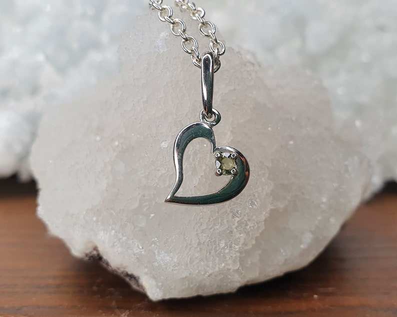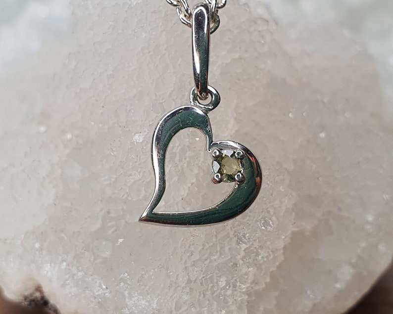 Moldavite 2mm Faceted Heart Pendant Beautiful Natural Crystal with Color Change Effect Loose Gemstone Gift for Her