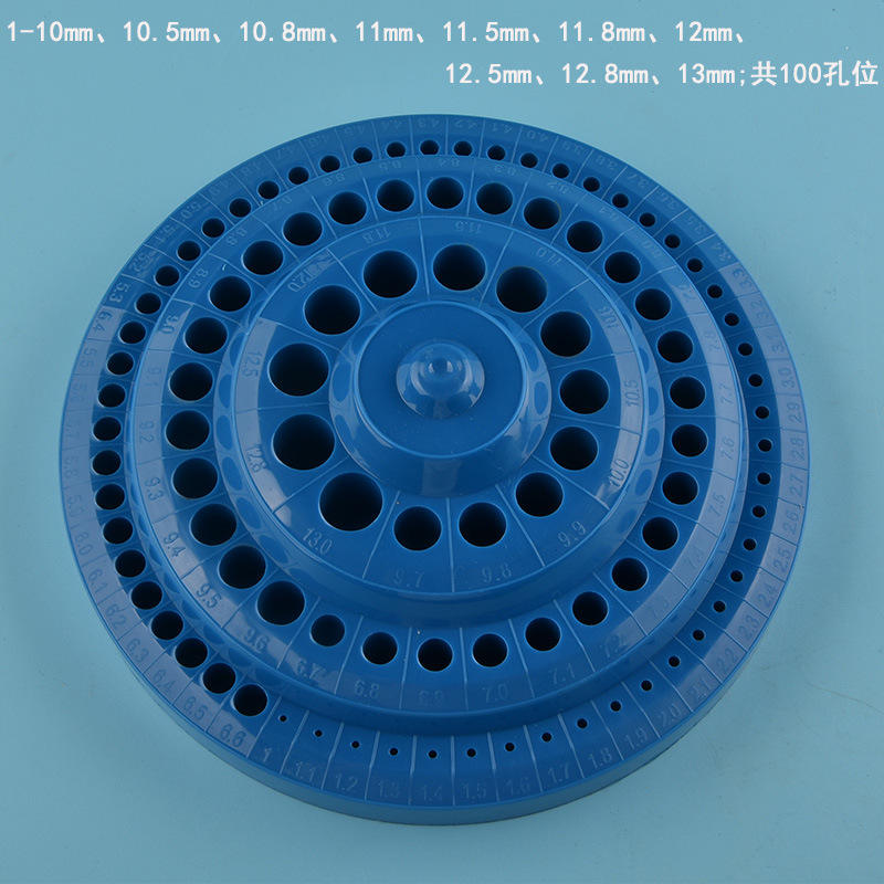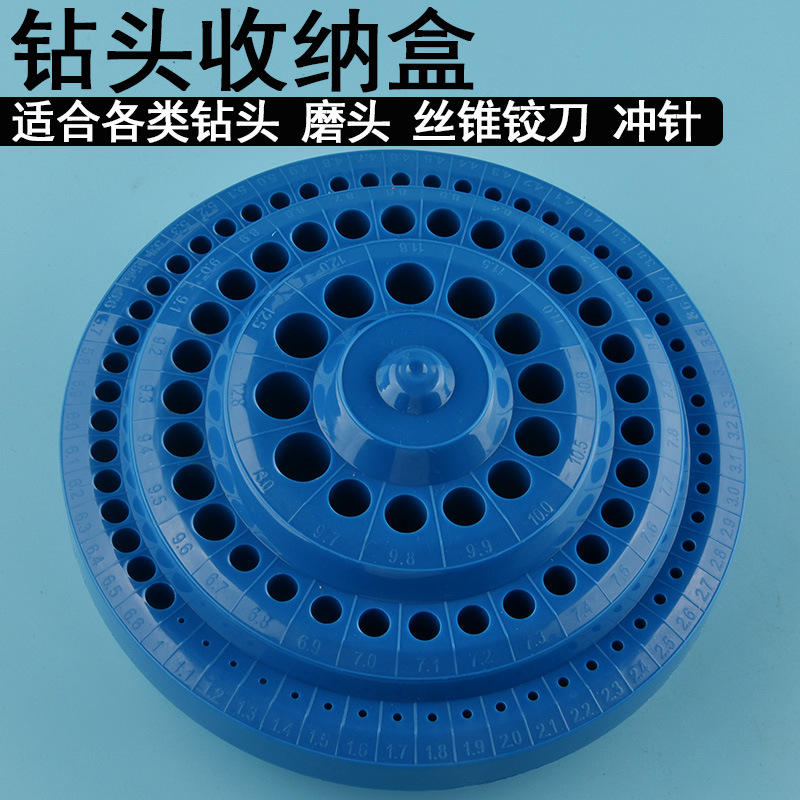 กล่องเก็บดอกสว่านโมลิเฮงสีน้ำเงิน 100 รู กล่องจัดเก็บเครื่องมือพลาสติกสำหรับดอกสว่าน CNC และดอกต๊าป