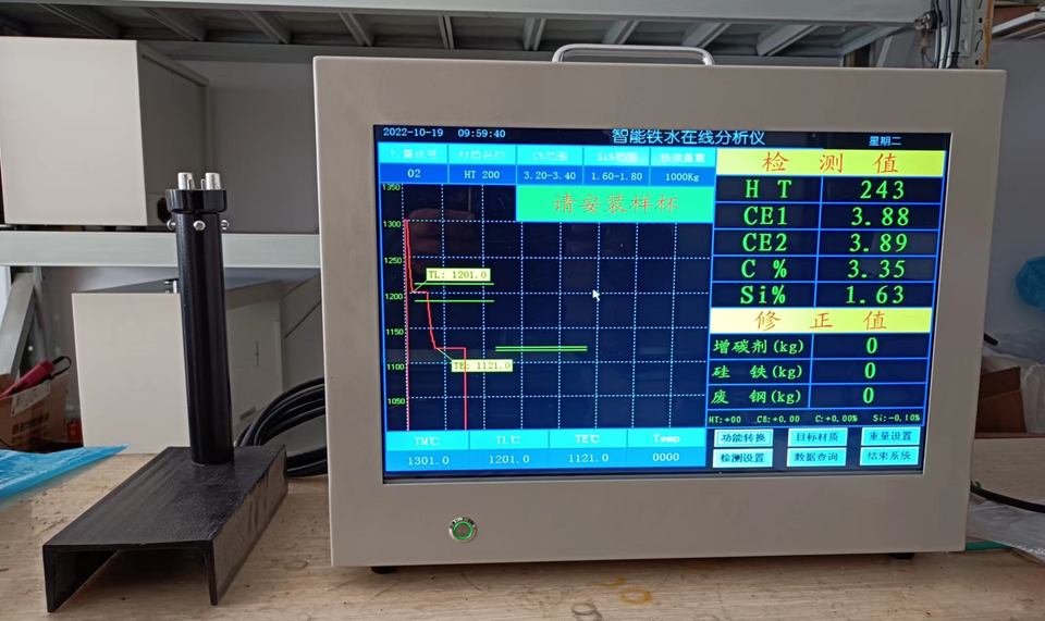 เครื่องวิเคราะห์ด้านหน้าเตาหลอมคุณภาพสูงแบบพกพา สำหรับการวิเคราะห์ธาตุคาร์บอนในเหล็กหลอม ผลิตในสหรัฐอเมริกา