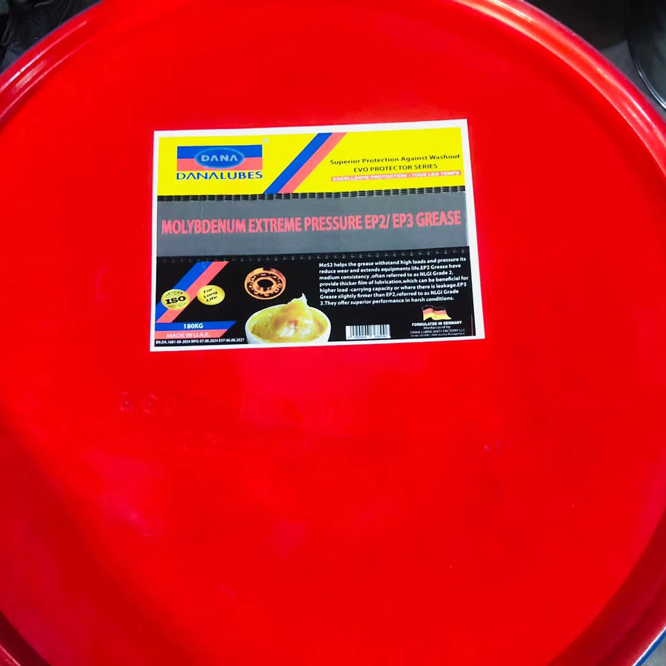 จาระบีโมลิบดีนัมสำหรับแรงดันสูงพิเศษ EP2/EP3 น้ำมันหล่อลื่นอุตสาหกรรม ตามมาตรฐาน SAE ของ DANA LUBES รุ่นสำหรับงานหนัก บรรจุถัง 180 กิโลกรัม
