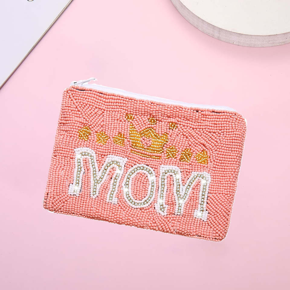 กระเป๋าใส่เหรียญลูกปัดแฟชั่นสำหรับคุณแม่ พร้อมซิปปิด กระเป๋าเงินลูกปัดทำมือน่ารัก ของขวัญวันแม่