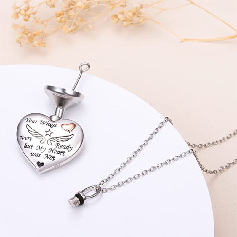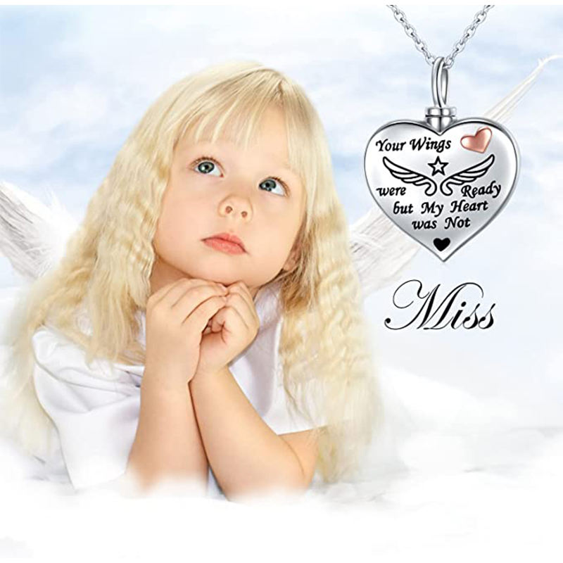 ของขวัญของแม่เป็นที่ระลึกปีกนางฟ้ารูปหัวใจจี้สร้อยคอโกศสำหรับผู้หญิง-ปีกของคุณพร้อมแต่หัวใจของฉันไม่ได้