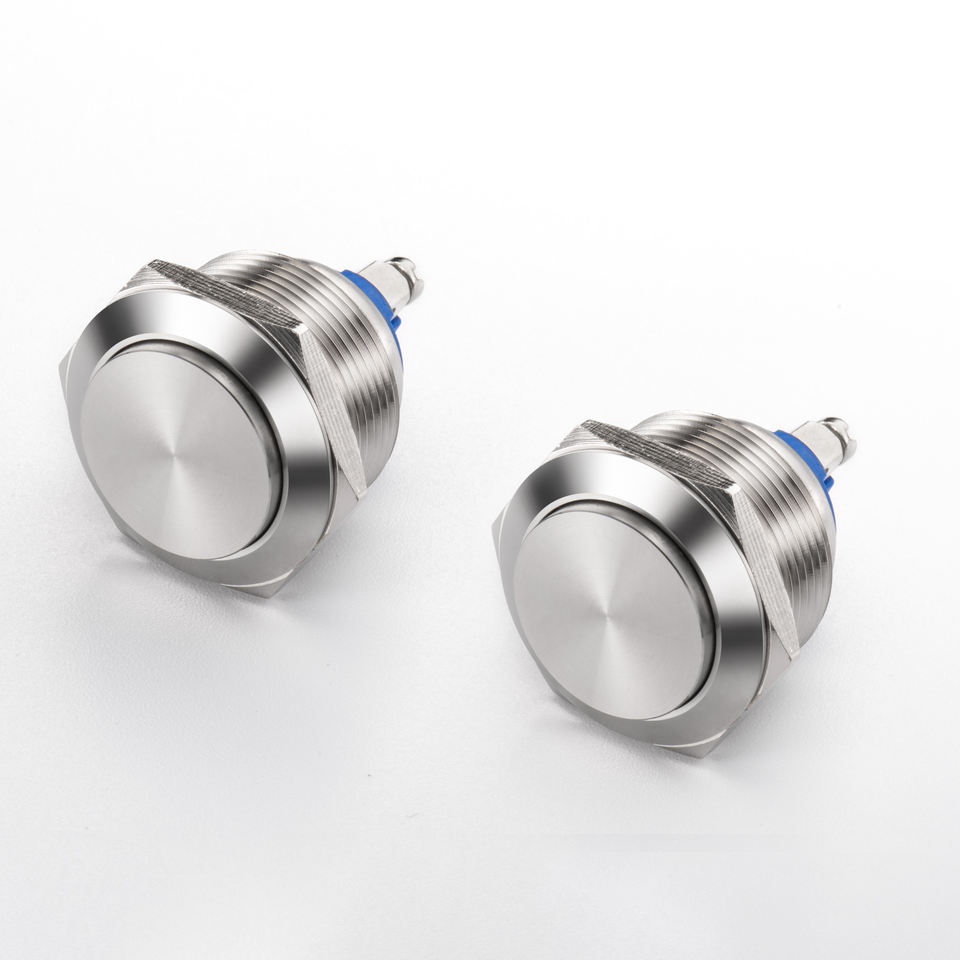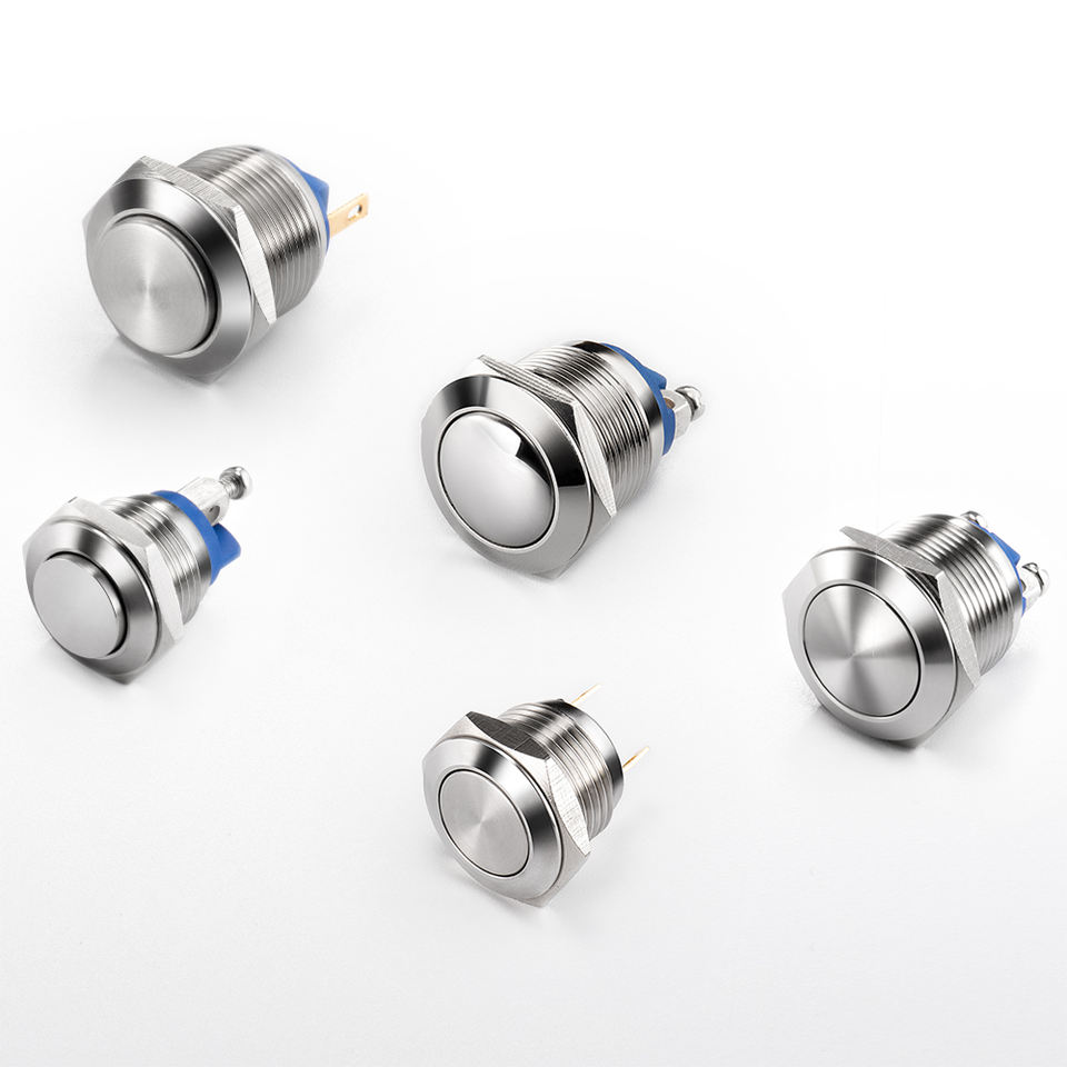 สวิตช์ปุ่มกดชั่วขณะ 12 มม. โครงสร้างอะลูมิเนียมสแตนเลสทนทาน IP65 10A 1NO1NC สำหรับการใช้งานเครื่องใช้ไฟฟ้าภายในบ้าน