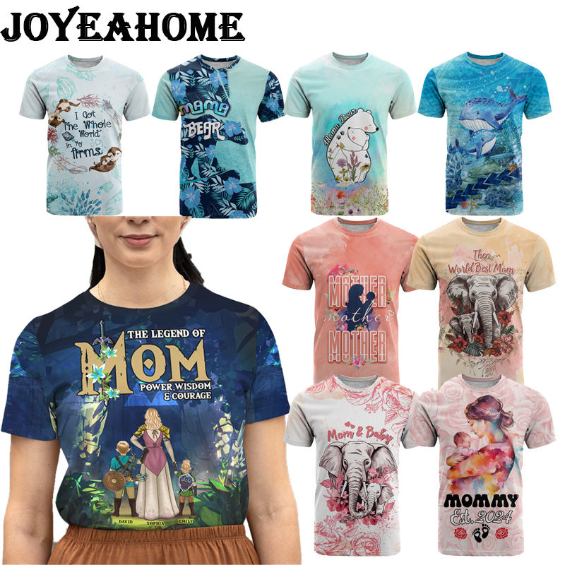 เสื้อยืดคอกลมแบบลำลองสำหรับคุณแม่3D ลายดอกไม้สีพาสเทล100% โพลีเอสเตอร์140กรัมน้ำหนักผ้าสำหรับวันแม่