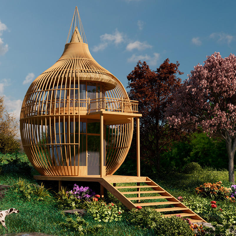 บ้านพักตากอากาศสำเร็จรูปน้ำหนักเบาแบบโมนาโก ป้องกันเสียงรบกวน สไตล์ดั้งเดิม เป็นมิตรกับสิ่งแวดล้อม หรูหรา แรงบันดาลใจจากกรงนก สำหรับการท่องเที่ยว