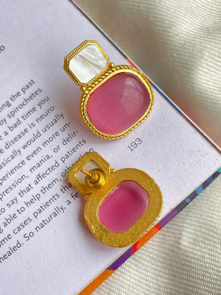 Monalisa หินเรขาคณิตสีทองต่างหูน้ำหนักเบาพร้อมผิวสีเงินสำหรับผู้หญิงเครื่องประดับแฟชั่น