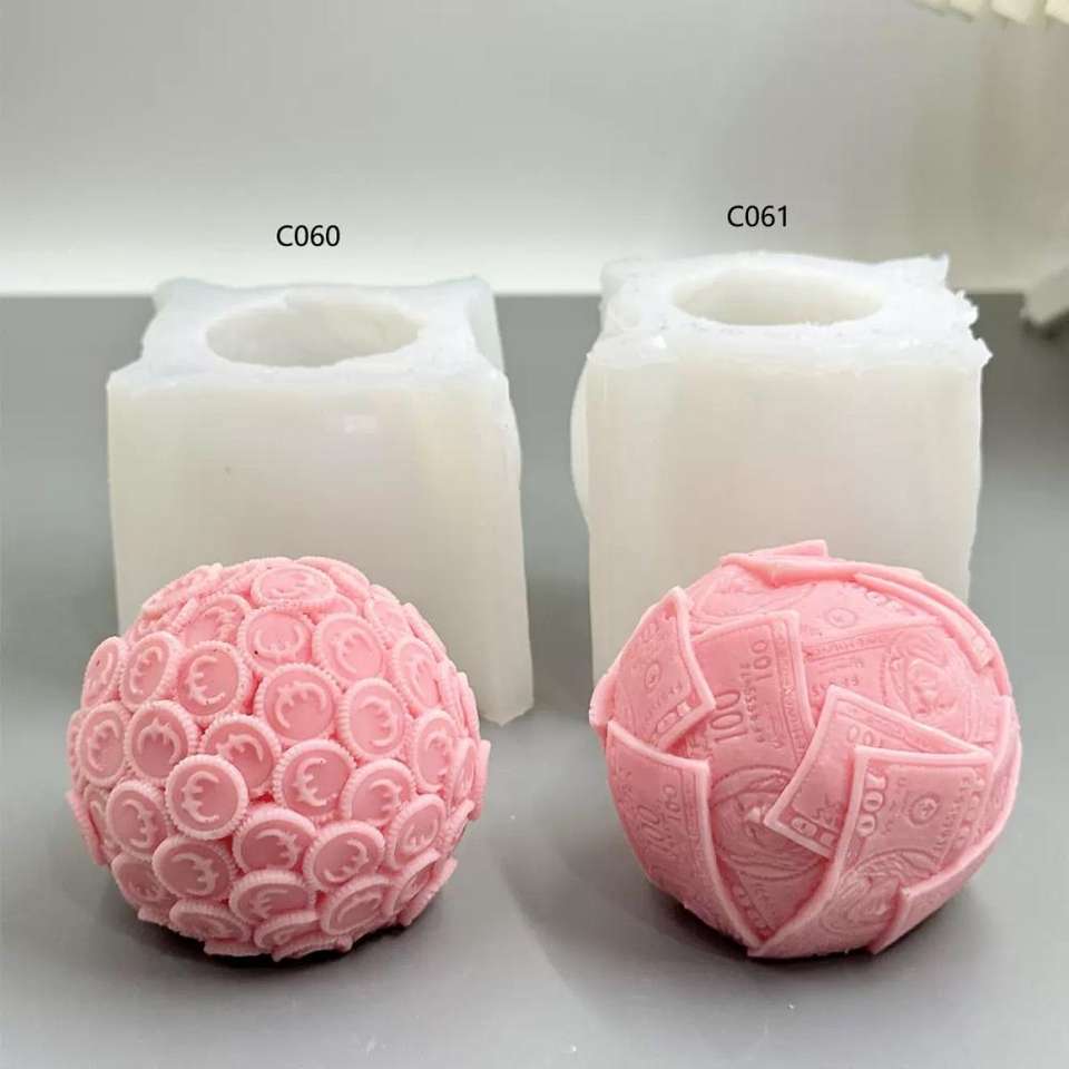 แม่พิมพ์ซิลิโคนสำหรับเทียนหอมทรงกลมลายสัญลักษณ์เงิน สบู่ทำมือ และเทียนยิปซั่ม