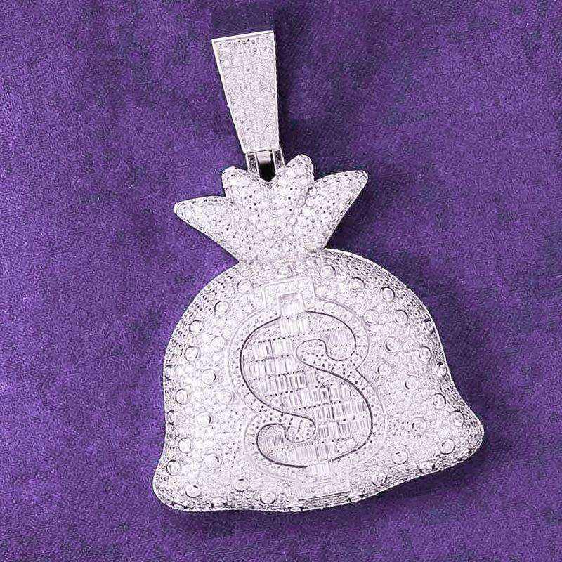 จี้เพชรทรงกระเป๋าเงิน ดีไซน์ฮิปฮอป คุณภาพสูง เงินแท้ 925 ประดับเพชรโมอิสซาไนต์ VVS