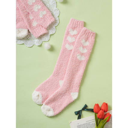 Monfoot Women's Pink Striped Sleeping Socks Breathable Jacquard Printed Knit Crew Length Custom Logo One Size Fits All