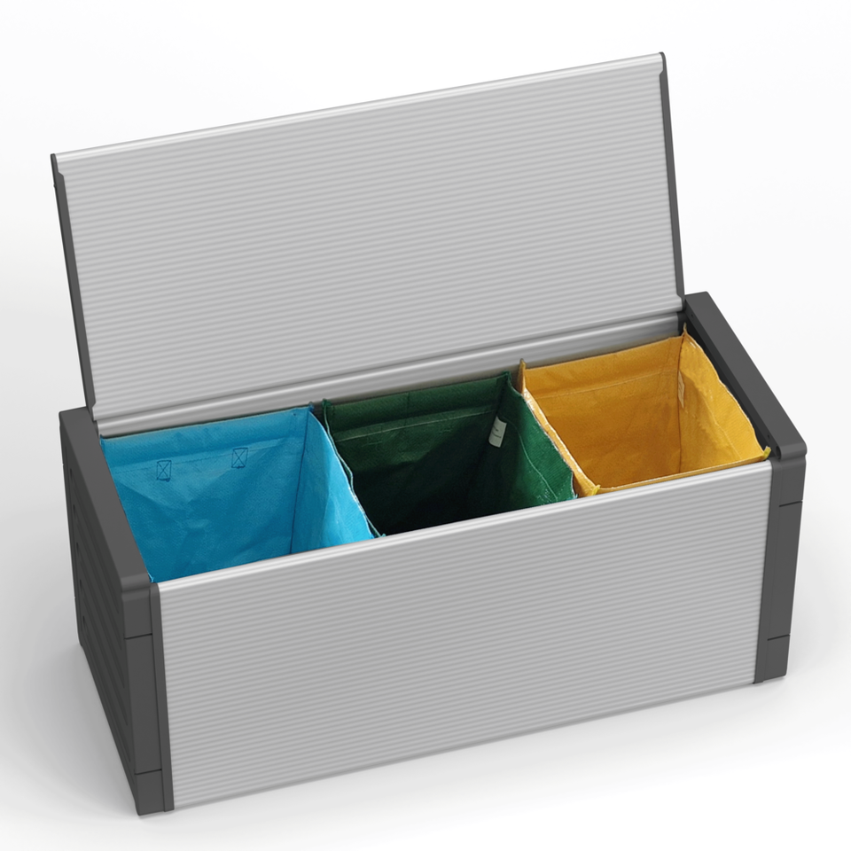 Mongardi ม้านั่งสเตนเลสสตีลทนทานสำหรับรีไซเคิลขนาด85ลิตร x 34กว้าง x 38ซม. โครงสร้างยืนสีเทาใช้ในร่ม/กลางแจ้งเป็นมิตรกับสิ่งแวดล้อม