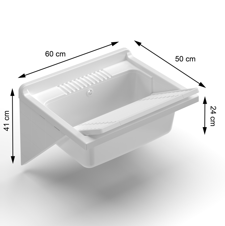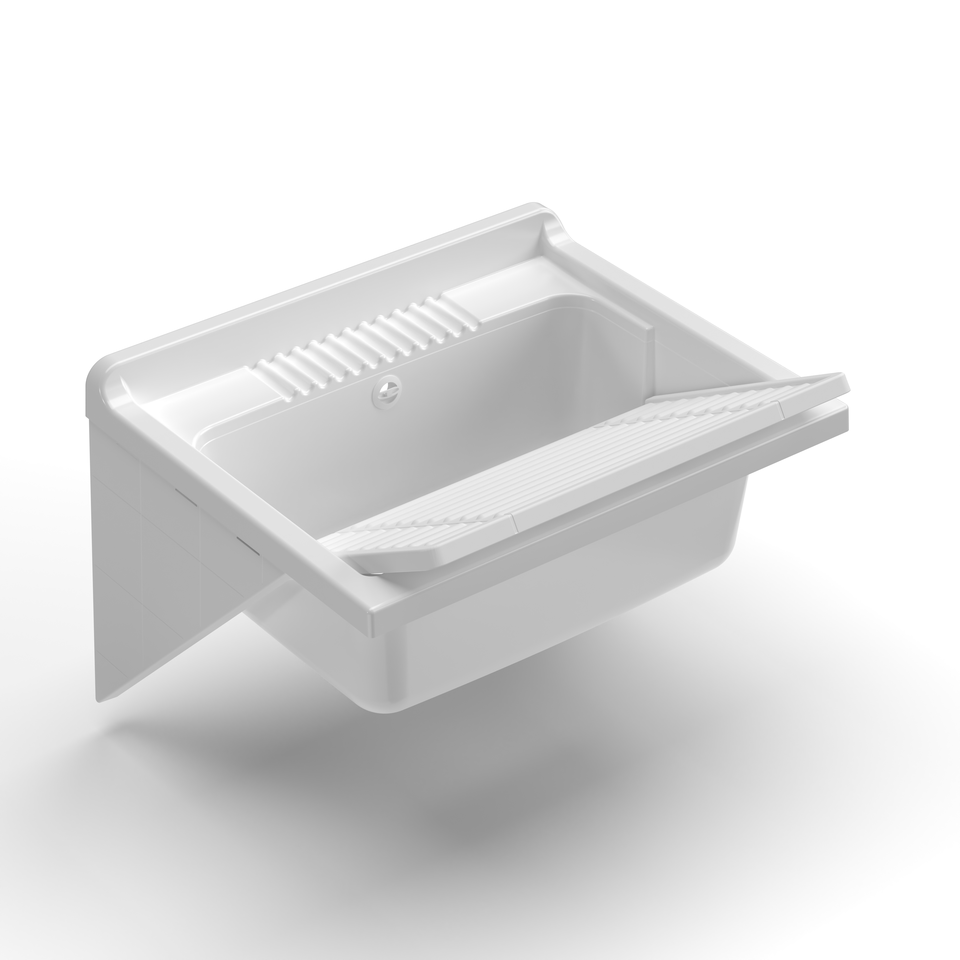 อ่างล้างมือติดผนังพลาสติก PP ทนทานต่อสภาพอากาศ ผลิตในอิตาลี ยี่ห้อ Mongardi สีขาวบริสุทธิ์ รูปทรงสี่เหลี่ยมผืนผ้า ดีไซน์ยุโรปสมัยใหม่ ใช้งานง่าย