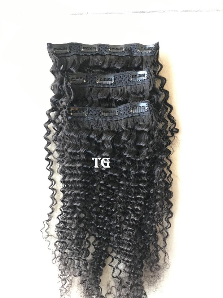 Product Name:Mongolian kinky curly clip in human hair extensions bundle