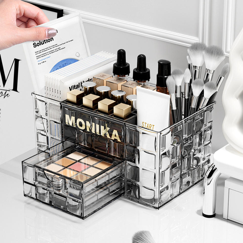 Monika Cosmetic Storage Box With Drawers Large Capacity Makeup Organizer For Desktop Dressing Table Plastic Storage Case