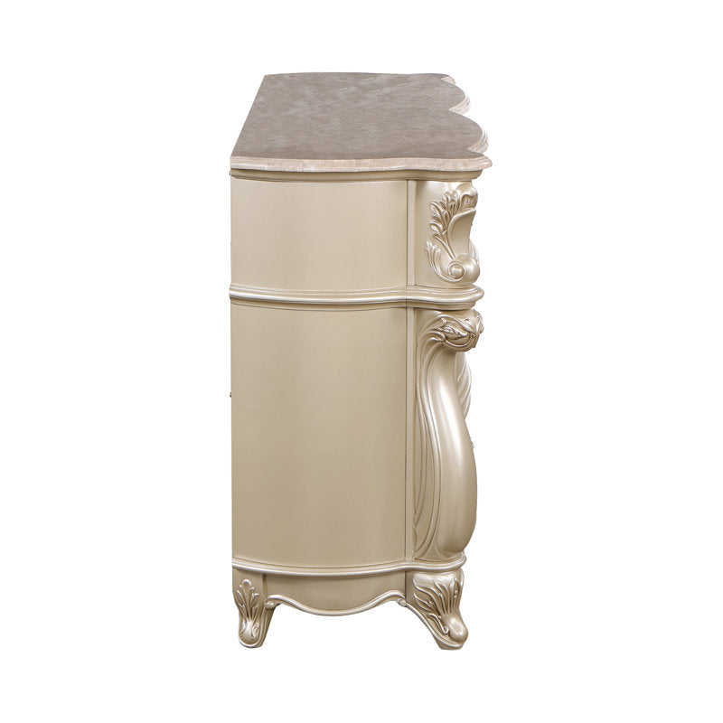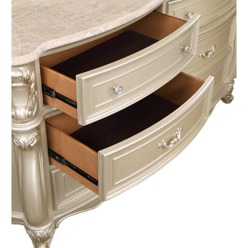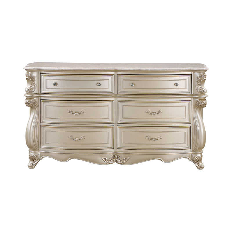 ตู้ลิ้นชักไม้สักสุดหรูสไตล์ร่วมสมัยทรงโค้งหินอ่อน6ลิ้นชักตู้เก็บของอเนกประสงค์สำหรับห้องนอน
