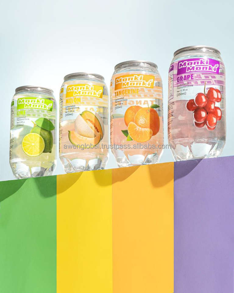 น้ำโซดาผลไม้รสเมลอนองุ่น โมงกี้ โมงกี้ รสชาติหลากหลาย ปราศจากน้ำตาล บรรจุขวด 0.35 ลิตร พร้อมดื่ม เติมพลังงาน ด้วยน้ำอัดลม