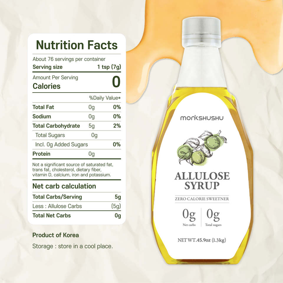น้ำเชื่อมอัลลูโลส 1.3 กก. ของมอนค์ชู สำหรับคีโต ปราศจากจีเอ็มโอ ปราศจากกลูเตน วีแกน สารปรุงแต่งอาหาร