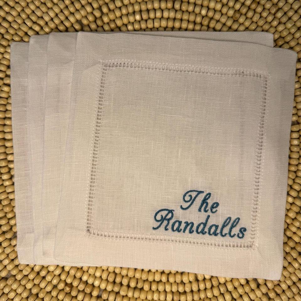 ผ้าเช็ดปากที่รองแก้วผ้าลินินลาย100% โมโนแกรมผ้าเช็ดปากปักลายนกกระเรียนค๊อกเทลของตกแต่งงานปาร์ตี้เฉพาะบุคคล