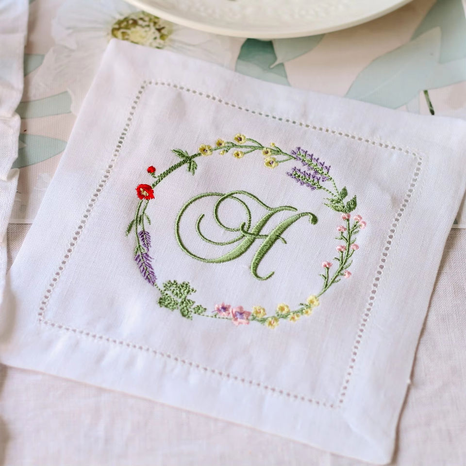ผ้าเช็ดปากที่รองแก้วผ้าลินินลาย100% โมโนแกรมผ้าเช็ดปากปักลายนกกระเรียนค๊อกเทลอุปกรณ์ผ้าส่วนบุคคล