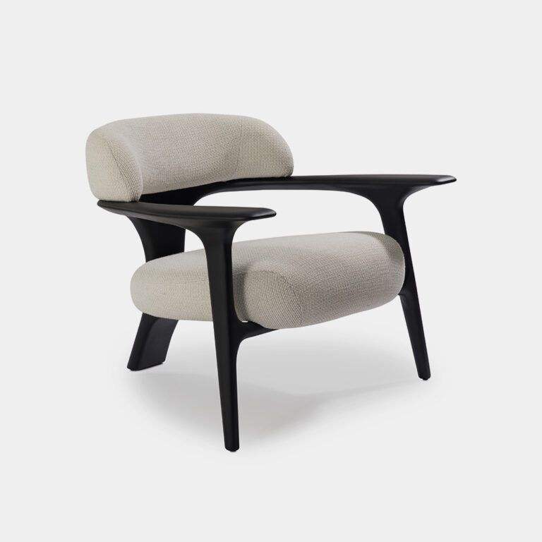 เก้าอี้พักผ่อนทรงโมโนลิธิกพร้อมโครงสร้างแบบเปิดและเบาะรองนั่งคู่ที่ลอยตัว สร้างสรรค์รูปทรงที่โดดเด่นอย่างมีเอกลักษณ์