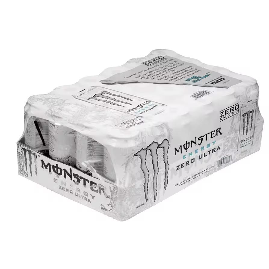 มอนสเตอร์ เอนเนอร์จี้ ซีโร่อัลตร้า 16 ออนซ์ แพ็ค 15 กระป๋อง ผลิตในเยอรมนี เครื่องดื่มให้พลังงานปราศจากน้ำตาล มีคาร์บอเนต