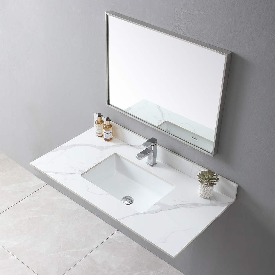 Montary 43x 22 Inch Bathroom Vanity Carrara Gold Single Faucet Hole Sintered Stone Top with Luxury Style