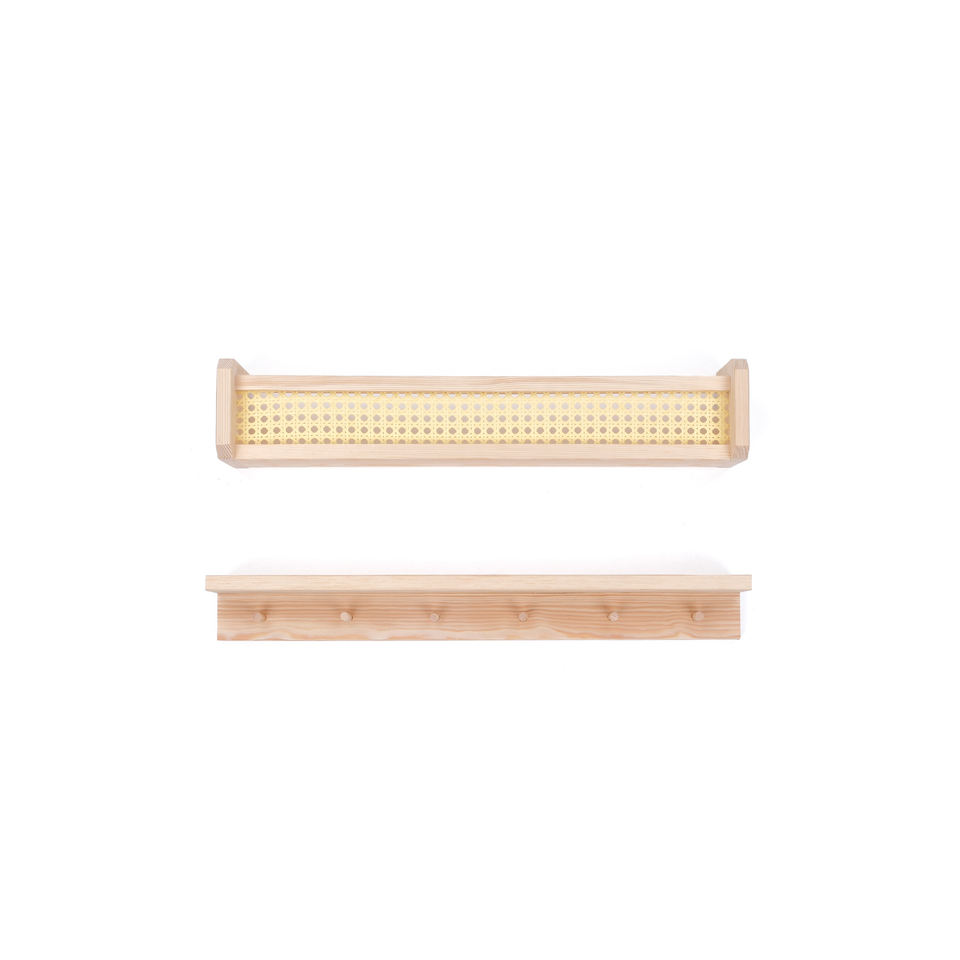 ชั้นวางของติดผนังและชั้นวางโชว์สำหรับเด็ก 2 ชิ้น ทำจากไม้ สไตล์มอนเตสซอรี่ สแกนดิเนเวียน ความกว้าง/ลึก 10 ซม.