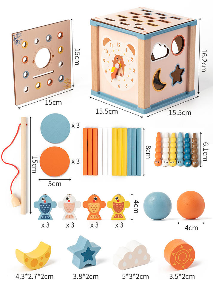 กล่องกิจกรรมมอนเตสซอรี่ 9-in-1 ของเล่นเสริมพัฒนาการอเนกประสงค์ พร้อมเกมตกปลาด้วยหนอน เกมจับคู่รูปทรง นาฬิกา และเกมถอดประกอบ ขายส่ง