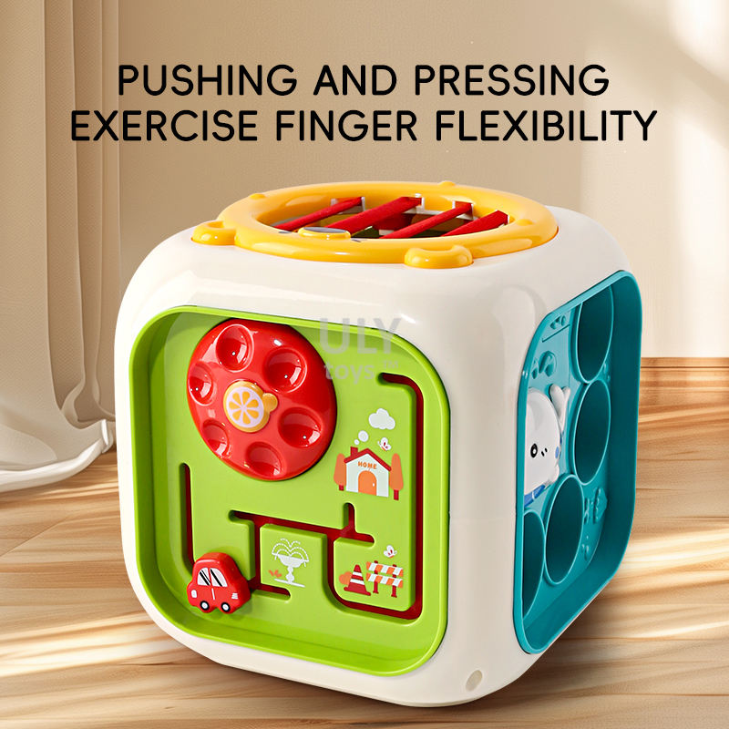 มอนเตสซอรี่กล่องของเล่นเพื่อการศึกษาสำหรับเด็ก6ด้านอเนกประสงค์ตามประสาทสัมผัสลูกบาศก์สำหรับอายุ2-4ปีดนตรีเกมปริศนาสำหรับเด็กทารก