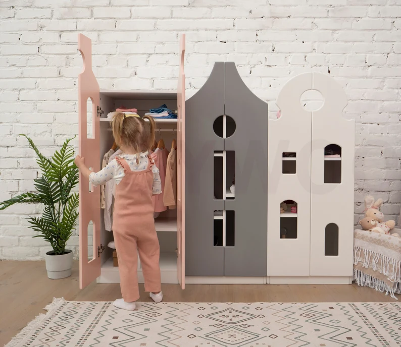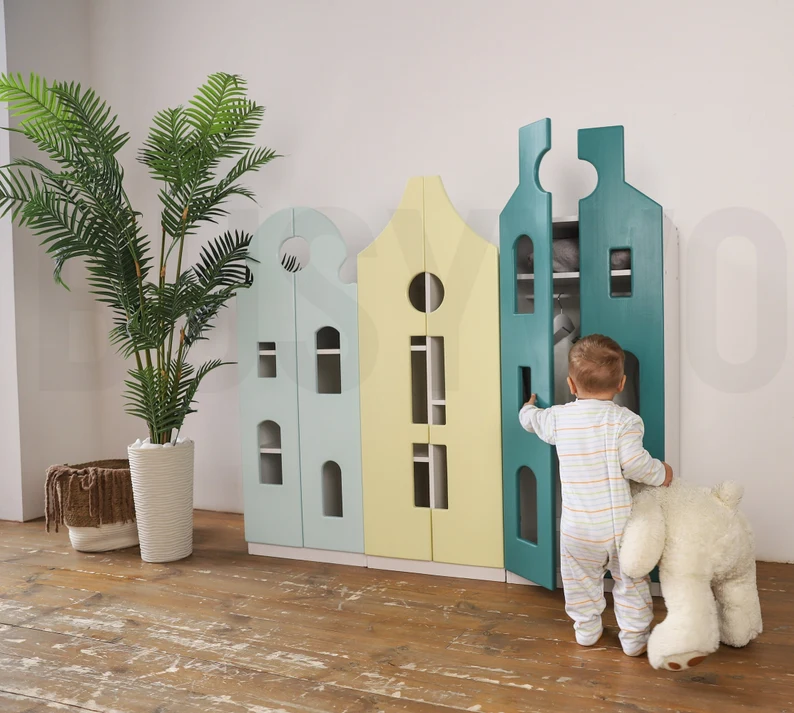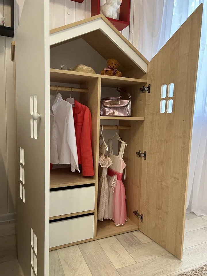 เตียงเด็กเล็กสไตล์ยุโรปทันสมัย แข็งแรงทนทาน แรงบันดาลใจจากมอนเตสซอรี่ พร้อมตู้เสื้อผ้าและชั้นวางของ เฟอร์นิเจอร์ไม้สำหรับใช้ในโรงเรียน รุ่น Zzm