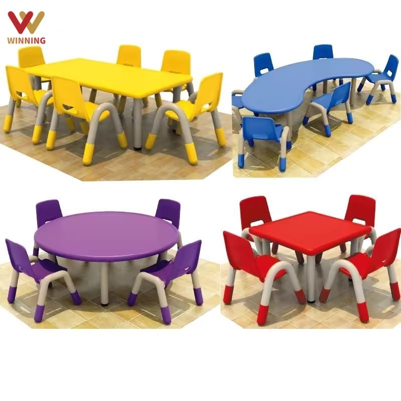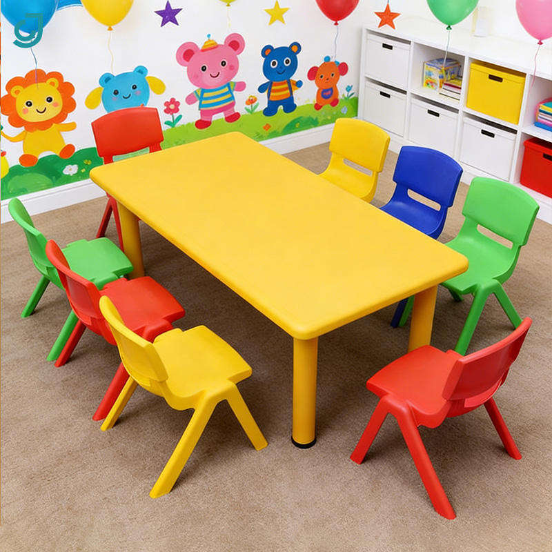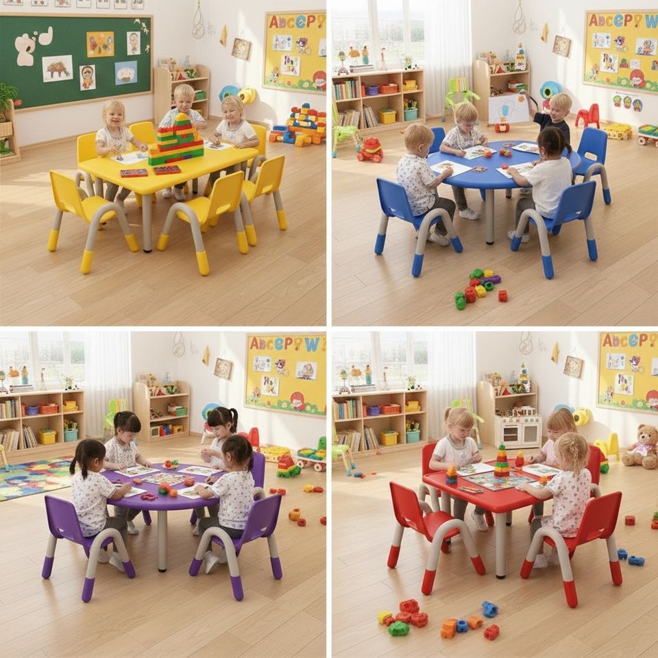 ชุดโต๊ะและเก้าอี้ไม้พลาสติกสำหรับเด็กอนุบาลมอนเตสซอรี่ เฟอร์นิเจอร์สำหรับห้องเรียนเด็ก ชุดเฟอร์นิเจอร์สำหรับเด็กเล็ก ศูนย์ดูแลเด็กก่อนวัยเรียน โรงเรียนอนุบาล