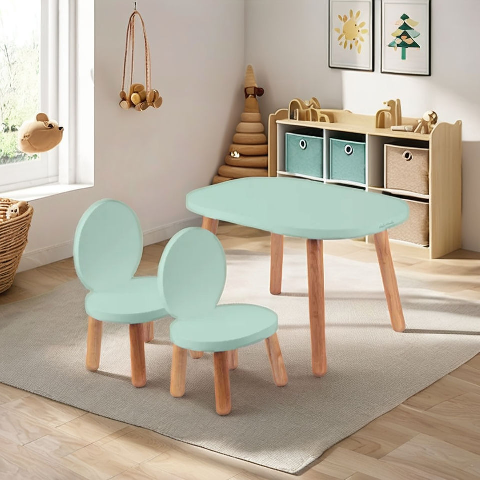Montessori ชุดโต๊ะเก้าอี้ไม้ธรรมชาติสำหรับเด็กอายุ1-4ขวบ