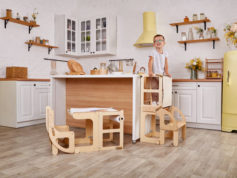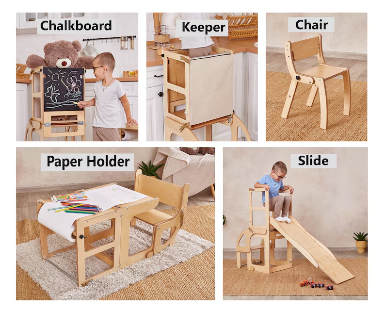 Montessori โต๊ะสำหรับเด็กหัดเดินพร้อมขาตั้งหอคอยไม้สำหรับห้องนอนโรงเรียนโรงเรียนอนุบาลหรือบ้านไร่ใช้ผลิตภัณฑ์เตียงสำหรับเด็ก