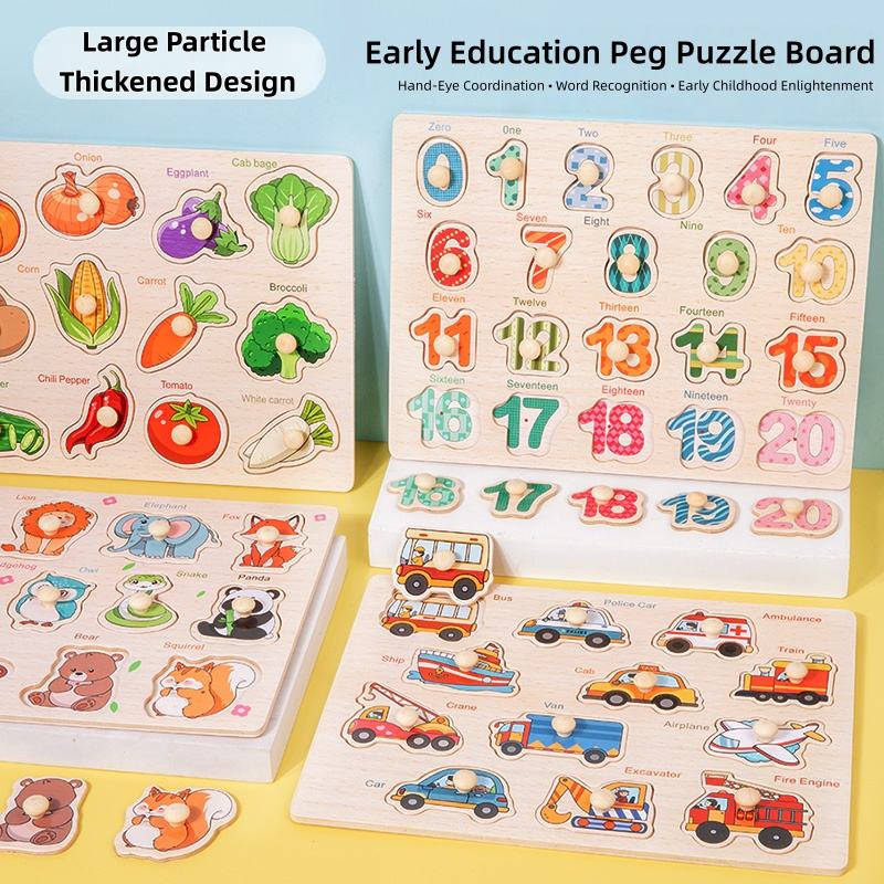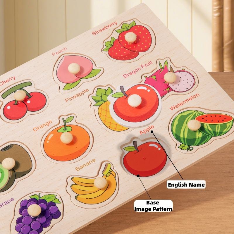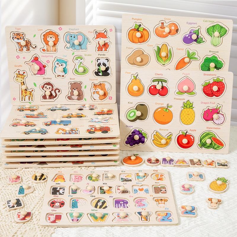 ของเล่นมอนเตสซอรี่สำหรับเด็ก ชุดตัวต่อไม้รูปผัก ผลไม้ ตัวอักษร รูปทรงสัตว์ ยานพาหนะ ตัวเลข ฝึกการเรียนรู้และจดจำรูปทรง