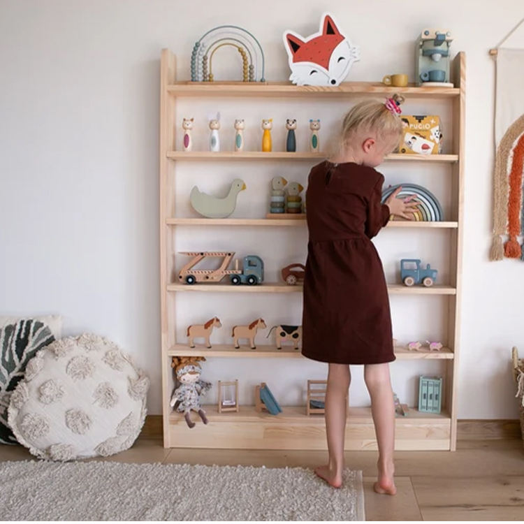 ตู้เก็บของเล่นไม้มอนเตสซอรี่แบบติดผนังสำหรับเตียงนอนและเฟอร์นิเจอร์เก็บของเล่นทันสมัย ยี่ห้อ Zzm ผลิตในยุโรป