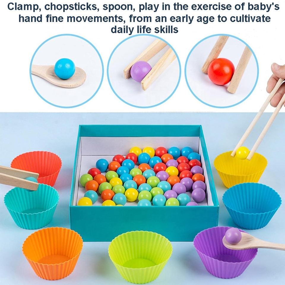 ข้อได้เปรียบ: ลูกปัดไม้จัดเรียงของเล่น:คลิปตะเกียบช้อนเล่นในการออกกำลังกายทักษะยนต์ที่ดีของทารก