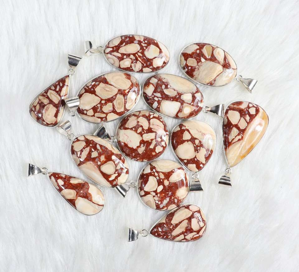 Natural Brecciated Mookaite Jasper Gemstone silver plated pendants