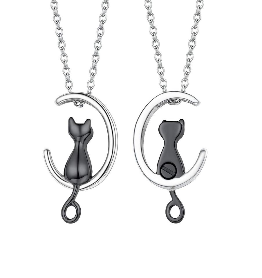 สร้อยคอโกศสีดำรูปแมวดวงจันทร์สำหรับขี้เถ้าสแตนเลสเครื่องประดับที่ระลึกเครื่องประดับโกศสำหรับผู้ชายผู้หญิงกำหนดขนาดได้เอง