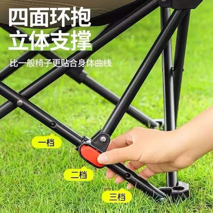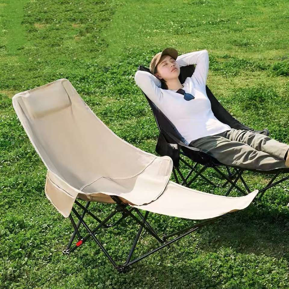 เก้าอี้ทรงพระจันทร์พร้อมที่วางขา เก้าอี้พับได้แบบพกพาสำหรับสวน ปรับได้สามระดับ ใช้กลางแจ้ง สีกากี ดำ เขียว