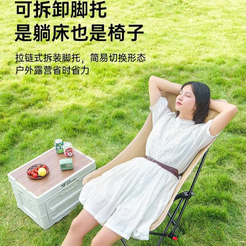 เก้าอี้ทรงพระจันทร์พร้อมที่พักขา เก้าอี้พับได้สำหรับสวนกลางแจ้ง รูปทรงวงรี พกพาสะดวก สไตล์ลำลอง พับเก็บได้สำหรับการตั้งแคมป์