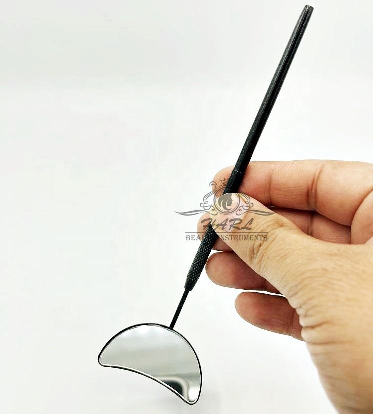กระจกขนตาสำหรับต่อขนตาสีดำเงางามรูปทรงดวงจันทร์กระจกต่อขนตาปลอมปรับแต่งได้สำหรับร้านเสริมสวย