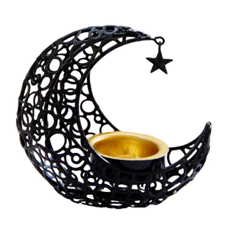 ที่ใส่น้ำชาสีดำและสีทองรูปดวงจันทร์ที่วางชาโลหะแบบปรับแต่งได้เหมาะสำหรับการขายที่ดีที่สุดของตกแต่งบ้าน