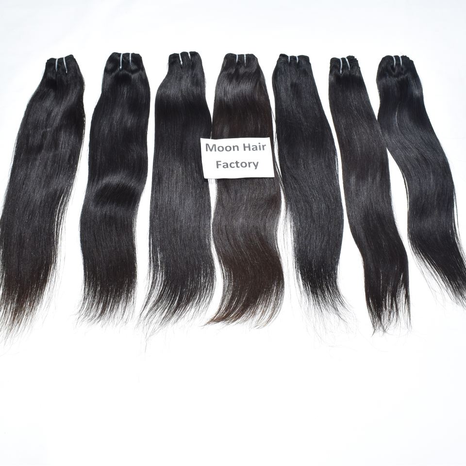 ผมดวงจันทร์มัดผมคนอินเดียแท้ผมต่อแบบตรงสไตล์บอบบาง