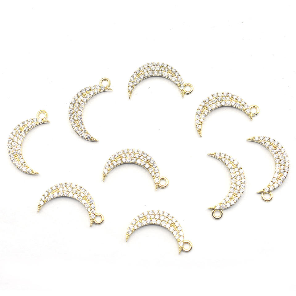 Moon Shape Sterling Silver With Zircon Gold Plated 22 MM Pendant