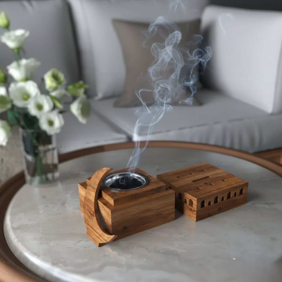 เตาเผาเครื่องหอมรูปพระจันทร์ ทำจากไม้ สำหรับใส่บาคูร์ เป็นเครื่องหอมสำหรับพิธีกรรม เป็นมิตรกับสิ่งแวดล้อม สามารถปรับแต่งได้ ใช้ได้ทุกวัน